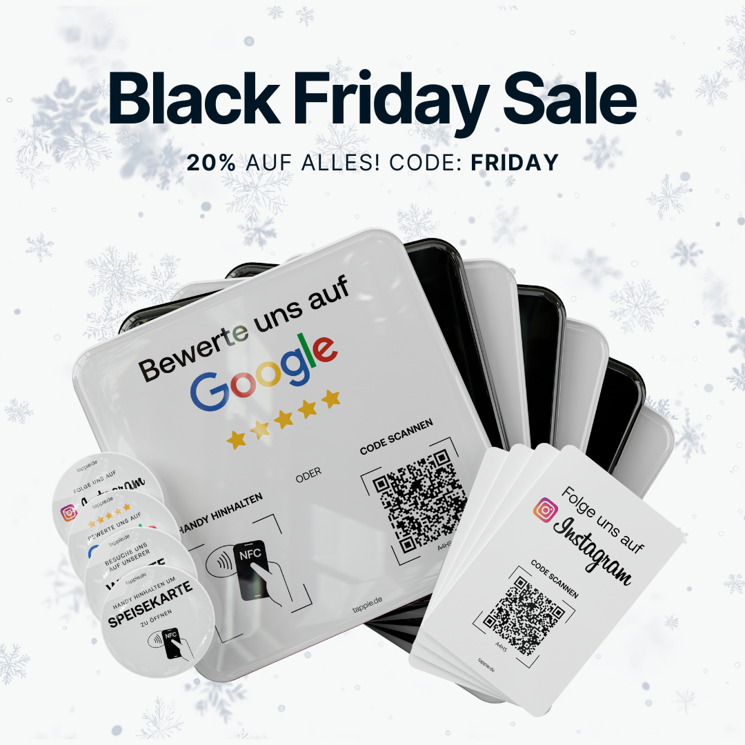 Praktisch schnelle Bewertungen oder Follower per Tap oder Scan sammeln. Einsetzbar in allen Branchen.